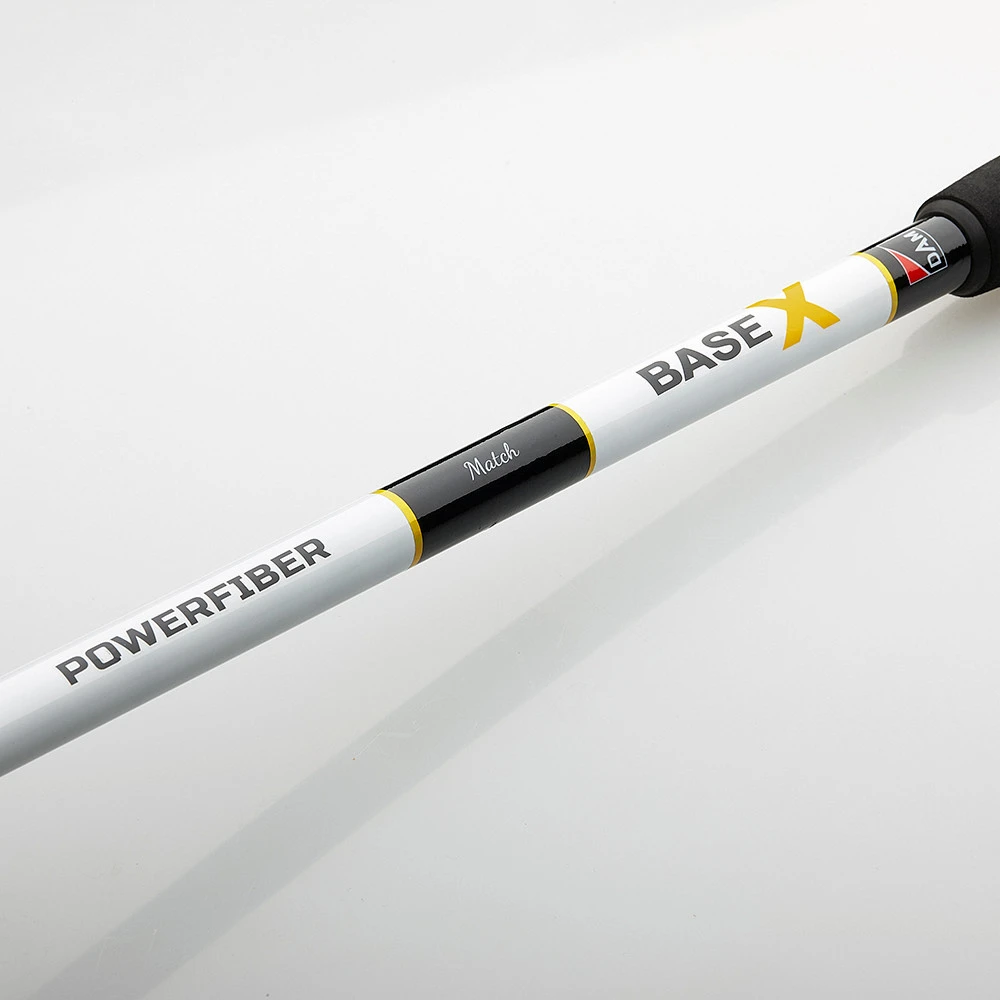Deze Base-X Match van DAM is de ideale matchhengel voor beginnende spelers en recreanten. Voorzien van een slanke maar krachtige blank van glasvezel met een mooie parabolische actie. Voldoende ruggengraat om goed de haak te zetten en sterk genoeg om ook een grote vis succesvol te drillen. Geleverd in een stoffen foedraal. Een hengel met een onklopbare prijs – kwaliteitsverhouding.