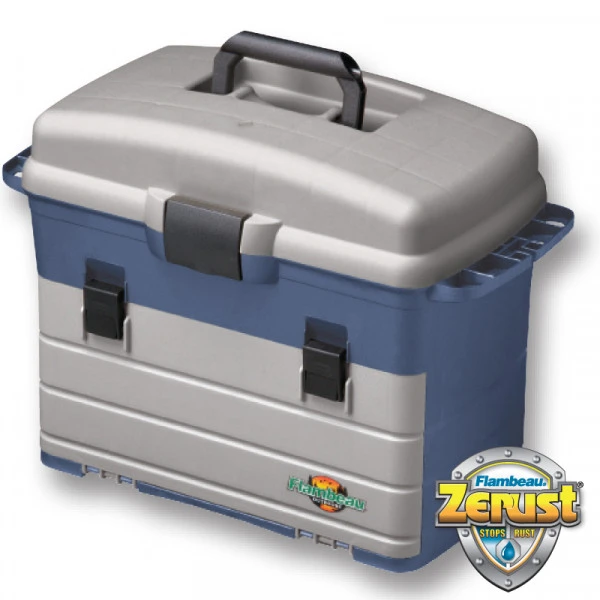 Deze viskoffer heeft ruimte in het diepe vak aan de bovenkant voor verschillend materiaal en gereedschap. Dit vak is bedekt door een deksel dat over stevige sluitingen beschikt. In de binnenkant van deze viskoffer is ruimte voor drie tackleboxen met alle drie 36 compartimenten. Er is dus enorm veel ruimte voor het opbergen van je kunstaas, gereedschappen en overig materiaal. Deze koffer wordt geleverd inclusief de 3 tackleboxen die op de foto te zien zijn!