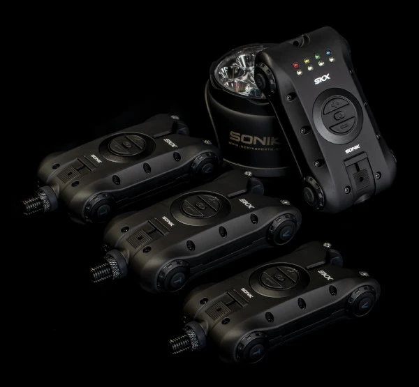 Mis geen aanbeet meer met deze beetmelderset van Sonik. De drie beetmelders hebben heldere LEDs, instelbaar in zes verschillende kleuren en je hebt keuze uit zeven verschillende volume- en tooninstellingen. De receiver heeft een bereik van maar liefst 150m. Deze set is compleet waterdicht en de toestellen hebben een rubber coating om zorgeloos te vissen in de meest zware omstandigheden. De bivvylamp is gesynchroniseerd met je set dus je merkt meteen wanneer je beet hebt. De lamp heeft zes instelbare lichtsterktes dus je hebt steeds voldoende licht in het donker.