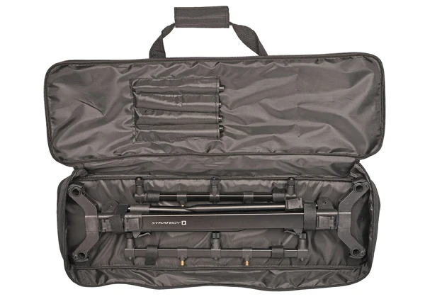 Basis is de Strategy ST110 Rodpod. Een gemakkelijk te gebruiken en zeer stabiele rodpod, die volledig verstelbaar is naar je set-up voorkeuren. Ideaal voor het vissen vanaf een steiger of op een harde ondergrond en inzetbaar voor alle type visserijen en wateren. De rodpod is geschikt voor drie hengels en wordt geleverd in een handige draagtas.
